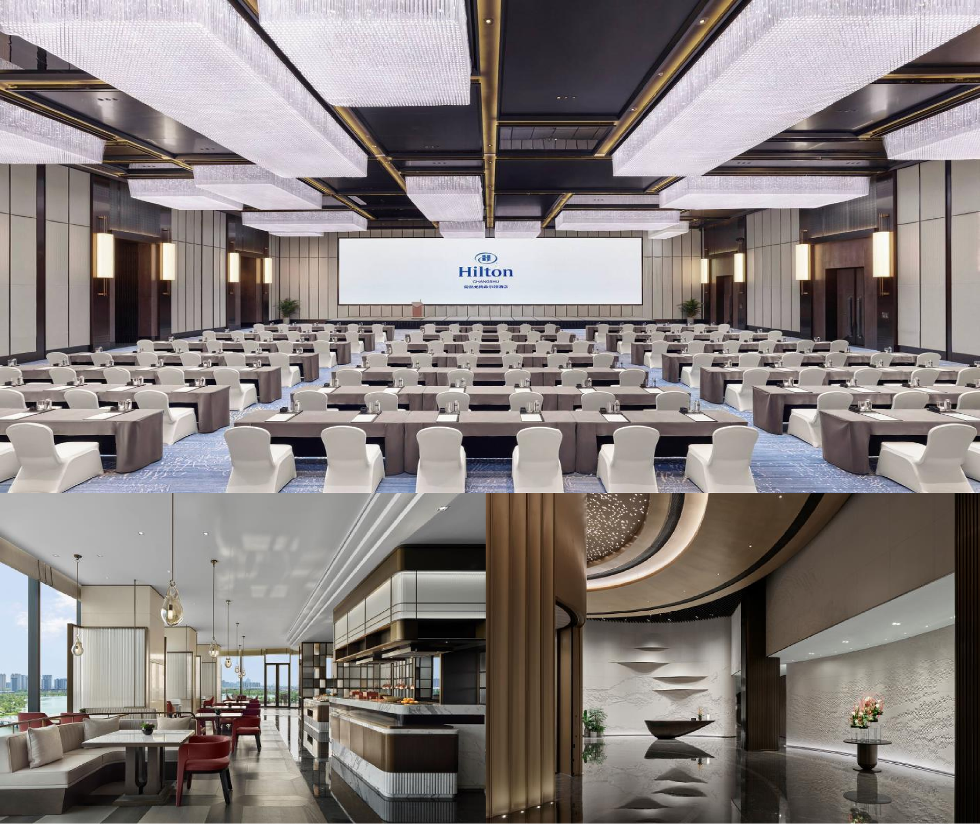 A landmark venue nestled in the city center, the Hilton Changshu (常熟龙腾希尔顿酒店) spans a total area of 33,800 square meters. The hotel features an iconic architectural design reminiscent of a grand cruise ship, characterized by transparency and openness. Set against scenic mountains and beside a tranquil lakeside, the hotel offers an elegant and pleasant natural environment. The hotel also enjoys convenient transportation access, located about 8km from Changshu High-Speed Railway Station (常熟高铁站), approximately a 60-minute drive from Wuxi Shuofang Airport (无锡硕放机场), and around a 90-minute drive from Shanghai Hongqiao International Airport (上海虹桥国际机场). For detailed transportation instructions, please refer to the Transportation section.